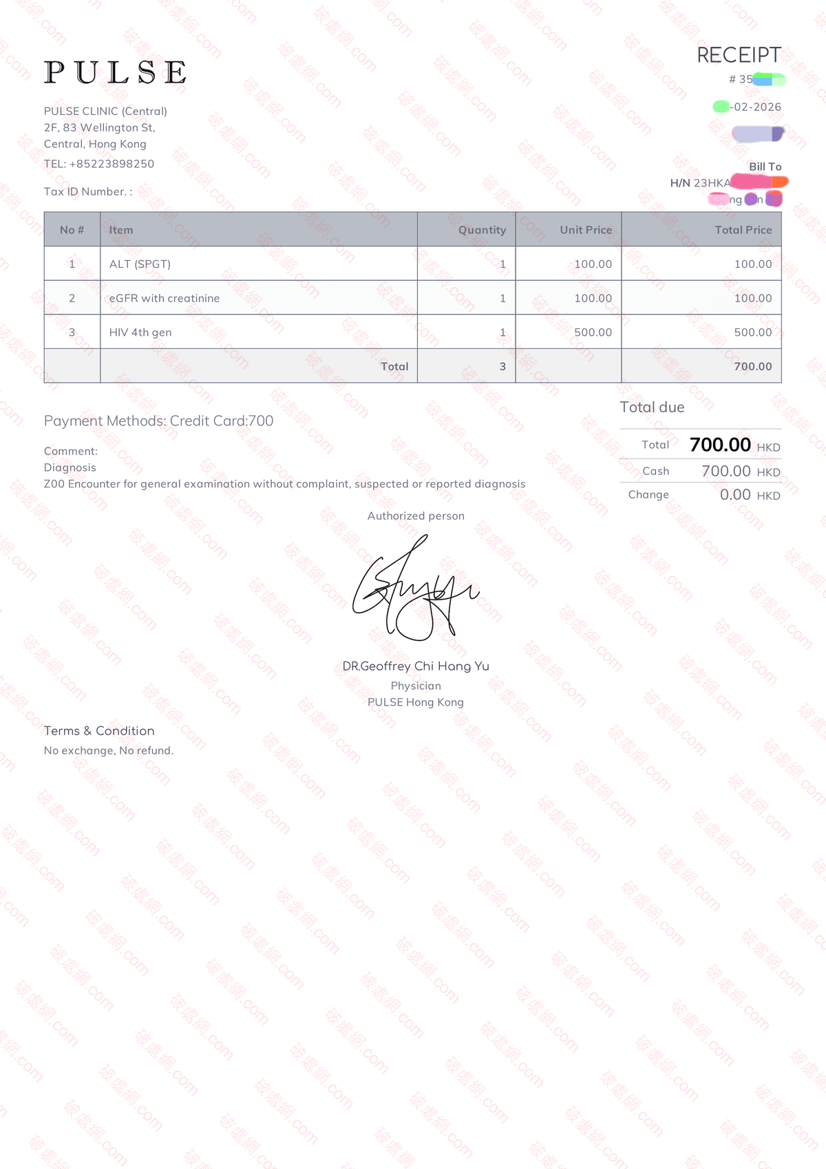 2024年09月性病檢測報告收據